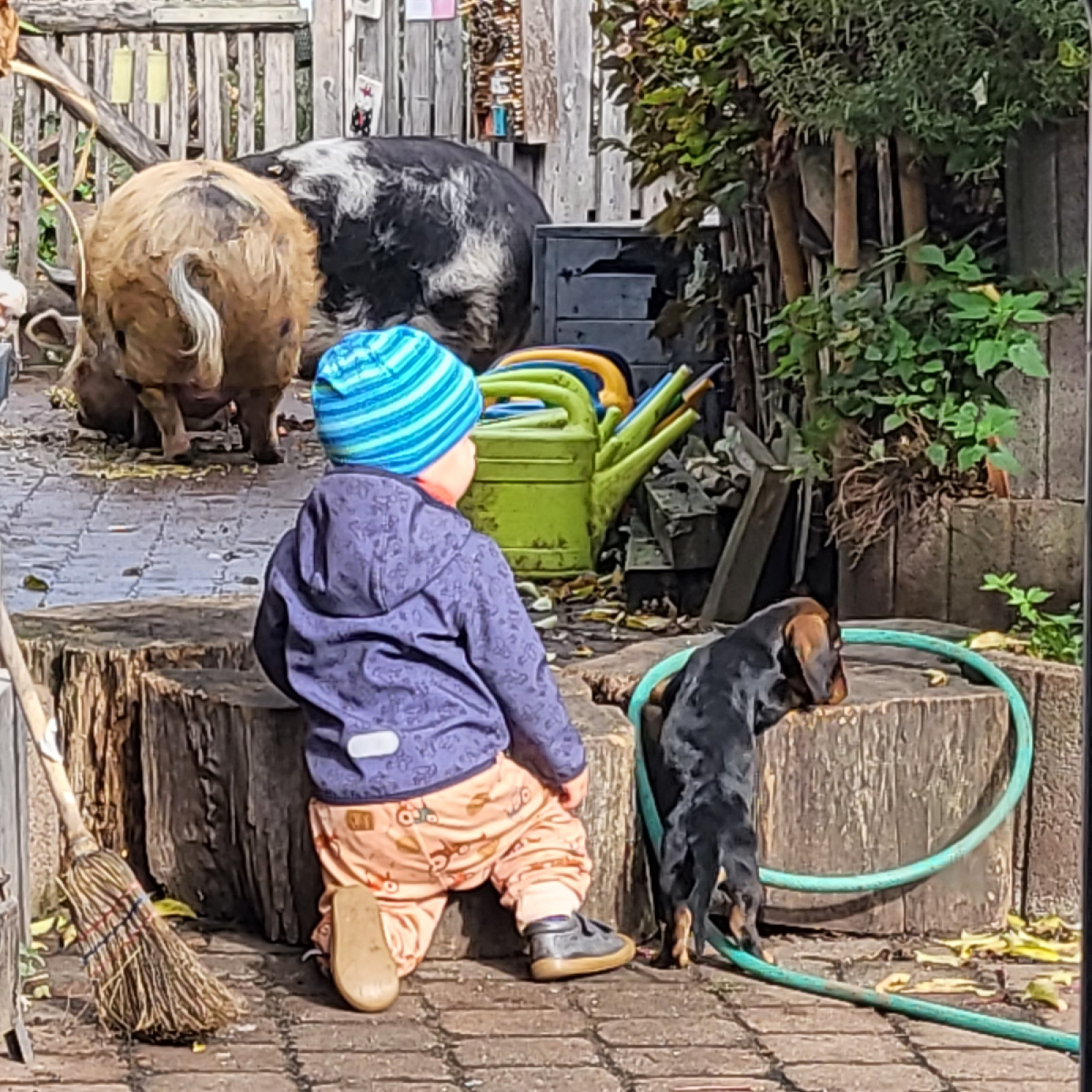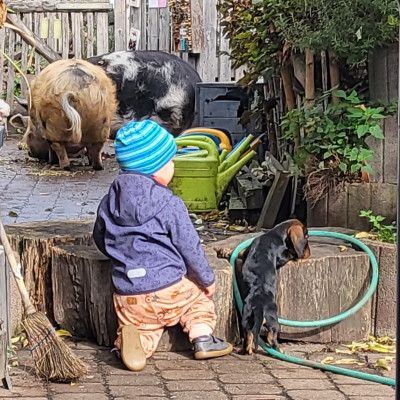 Folgende Besonderheiten gibt es in meiner Kindertagespflege: pädagogische Schwerpunkte sind Natur, Tier und Nachhaltigkeit. Kinder können hier erforschen, entdecken, matschen, die kleinen Dinge beobachten und schätzen lernen. Eine respektvolle Beziehung zu den Tieren aufbauen, die Hühner und kune kune Schweine beobachten, versorgen, kuscheln etc.